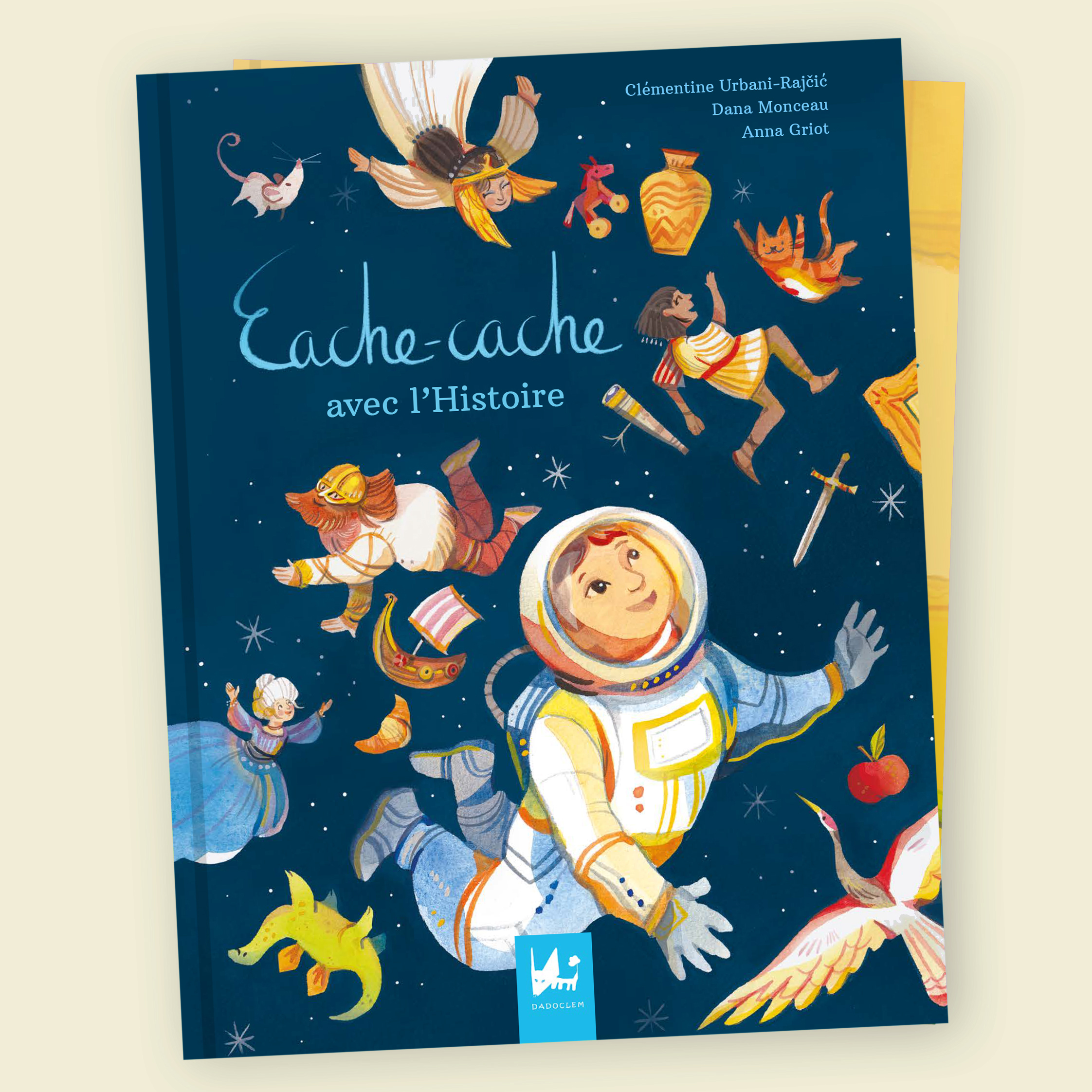 Album Cache-cache avec l'histoire   Pour qui  ›  Éditions Dadoclem Quand  ›  2025 De l'âge des dinosaures à la conquête spatiale, en passant par l’Égypte antique, que de merveilles à explorer ! Pour cet album, j'ai réalisé vingt planches à la gouache, plongeant le lecteur dans plusieurs époques, avec de...