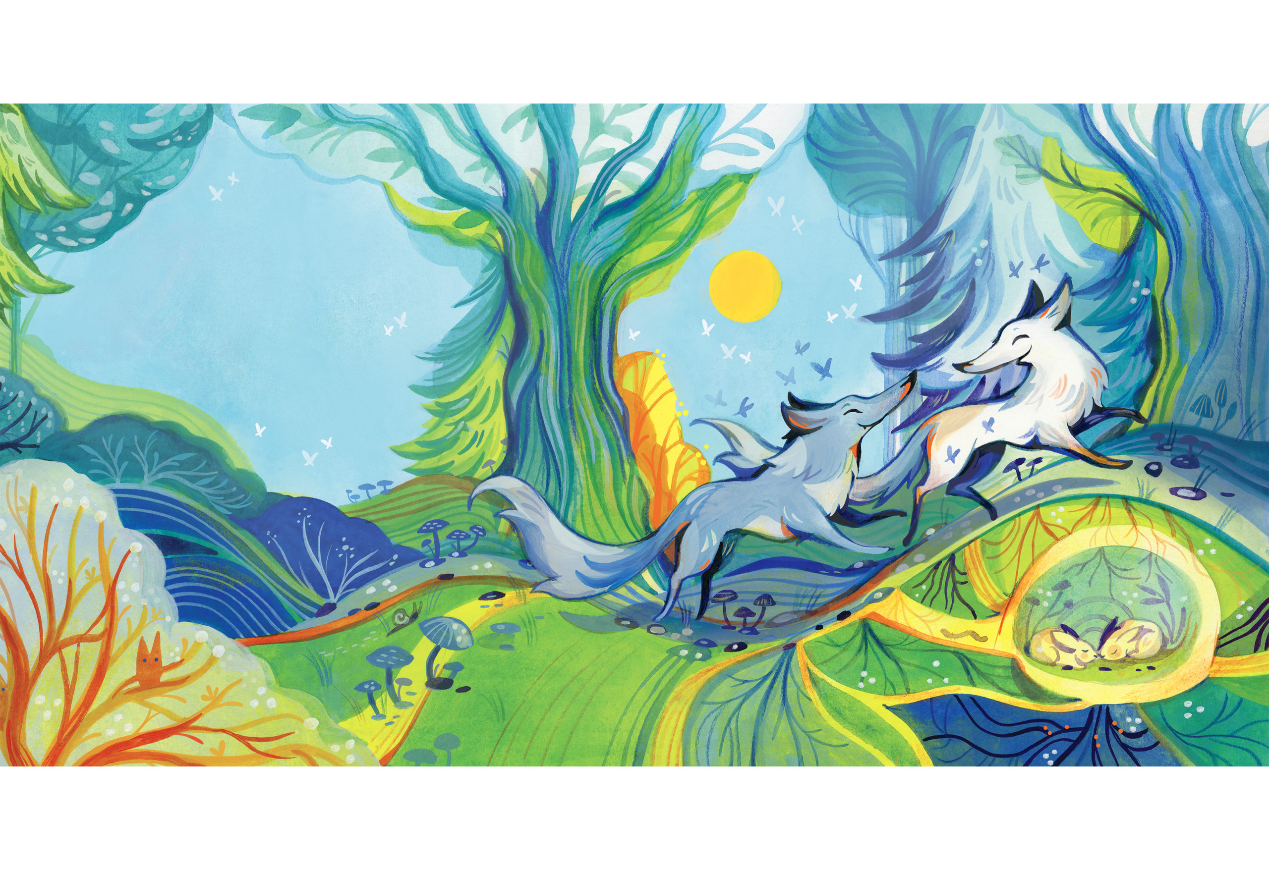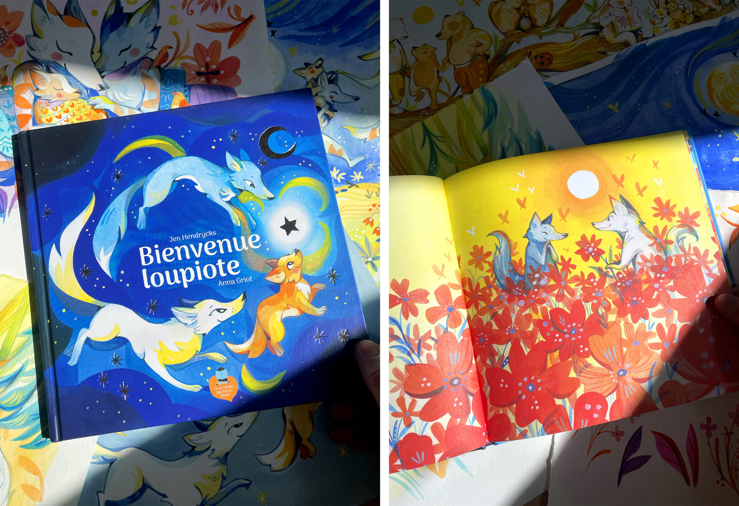 Illustration à la gouache de l’album Bienvenue Loupiote écrit par Jen Hendricks, et publié en avril 2026 par les éditions On ne compte pas pour du beurre.